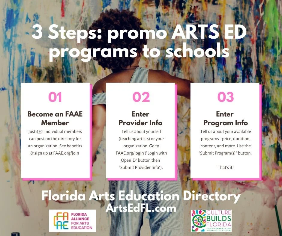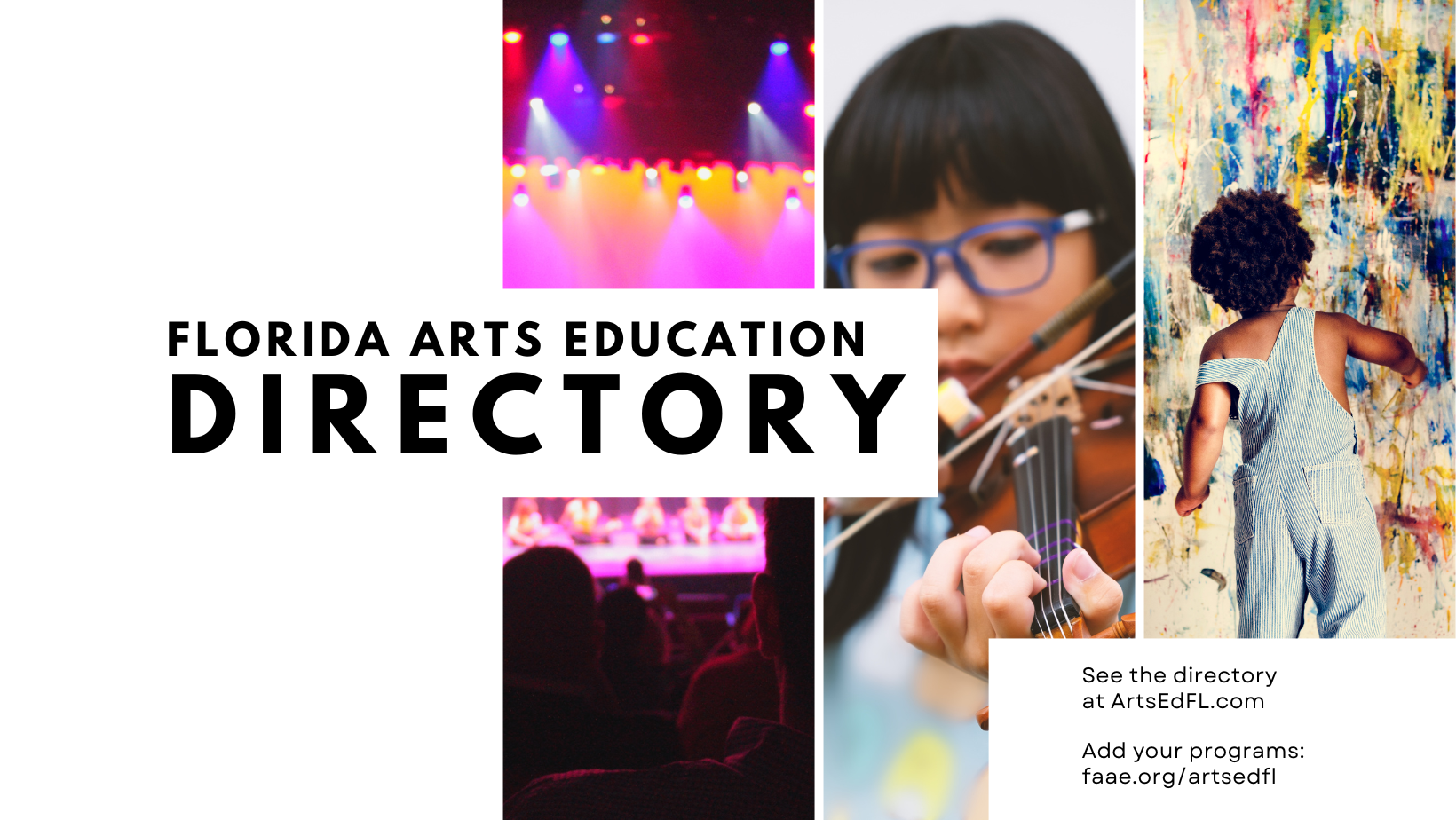 The Florida Arts Education Directory is a place for schools and community venues to find arts education programs for their students - whether on-site experiences or field trips.